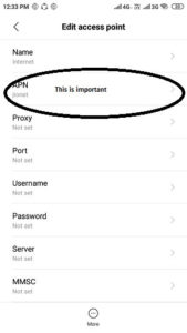 - When selected you can see the access point name available by default it as “Internet jionet”